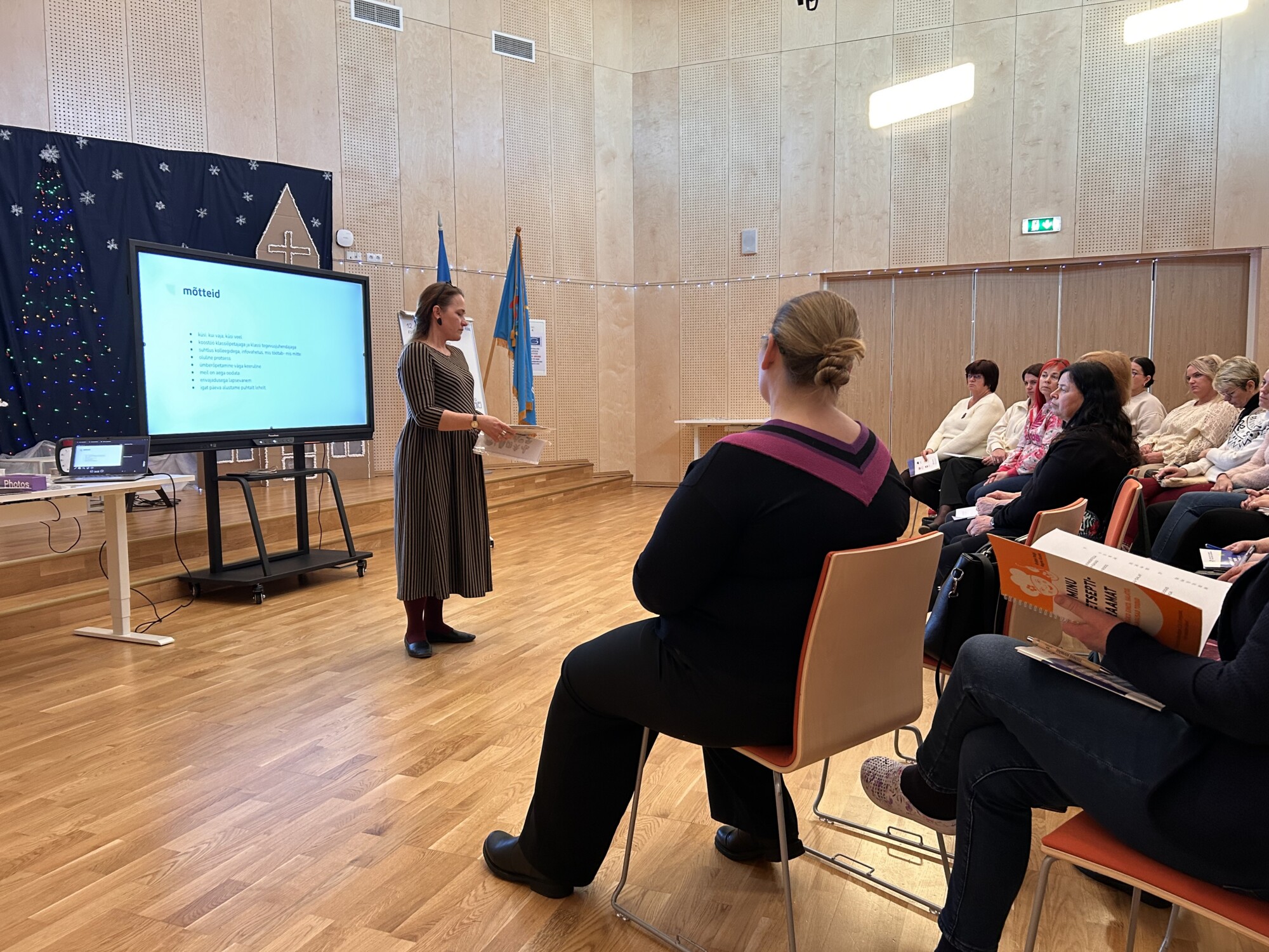 Klassiõpetaja Raili Hiiesalu rääkis haridusliku erivajadusega laste toetamise põhimõtetest ja toetava keskkonna loomise võimalustest. Õppepäeva jooksul anti ülevaade terviklikust lähenemisest lapse toetamisele ning selgitati, et lapsega loodud usalduslik ja turvaline suhe on aluseks nii õppimisele kui ka käitumise suunamisele. Rõhutati, et enne sekkumist on oluline last teadlikult jälgida ja mõista. Samuti käsitleti lapse emotsionaalset arengut, eneseregulatsiooni ning erinevate stiimulite mõju käitumisele ja igapäevasele toimetulekule. Selgitati ning toodi näiteid toetava keskkonna ja selge struktuuri loomisest ning jagati praktilisi juhendamisvõtteid.